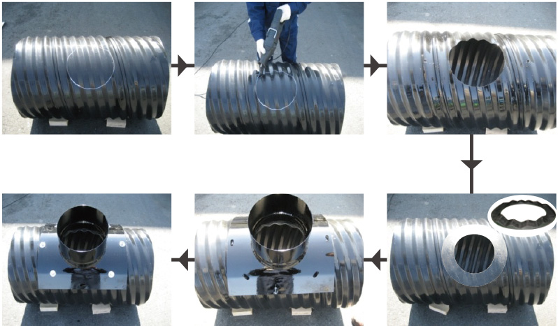 사용하지 않고 현장에서 직접 본관을 천공하여 지관을 연결한다. - 경비 절감 및 공사기간을 획기적으로 단축할 수 있다.