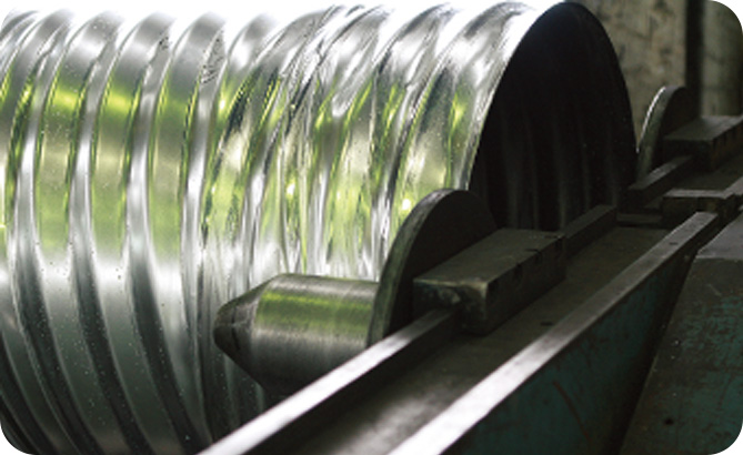 파형강관은 내식도금강판을 파형 성형하여 강성을 높인 다음 나선형식으로 조관한 제품으로